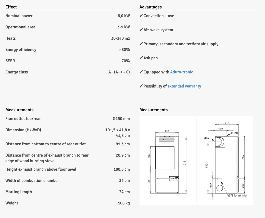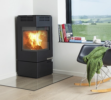 Cubist wood-burning stove with large corner glass to provide stylish view of the flames from several angles. Aduro 12 is the ideal corner solution as the flue outlet can be angled to both sides. This model is also available with an module for firewood storage – which means that the stove is best fitted on a straight wall. A new top plate ensures that the module is fully integrated with the stove.