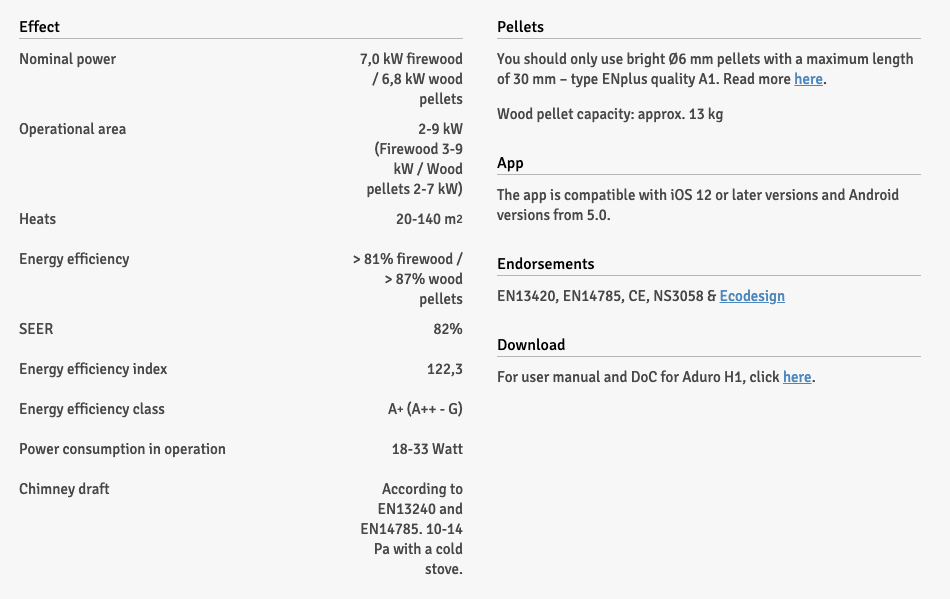 Aduro H1 combines efficient heating from wood pellets and the cosiness of a real fire with wood. Enjoy the dancing flames and the warm atmosphere when firing with logs, or let the stove burn overnight with pellets, or heat the house when you are not at home.